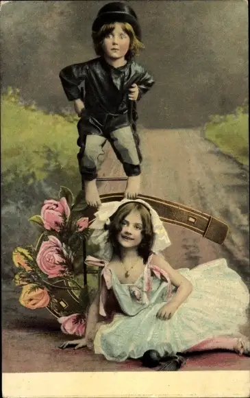 Ak Glückwunsch, Kind als Schornsteinfeger, Hufeisen, Mädchen