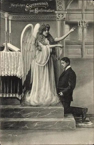 Ak Glückwunsch Konfirmation, Engel, Kniender Junge