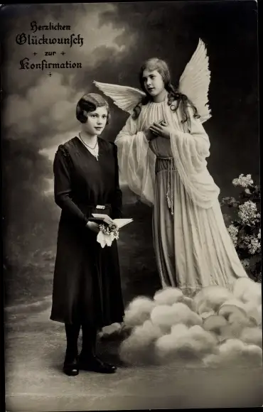 Ak Glückwunsch Konfirmation, Engel und Mädchen