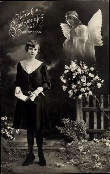 Ak Glückwunsch Konfirmation, Engel und Mädchen