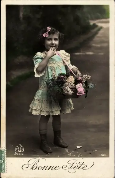 Ak Glückwunsch, Mädchen mit Blumenkorb