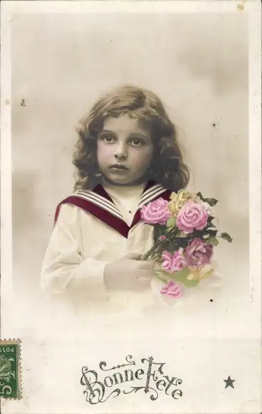 Ak Glückwunsch, Mädchen mit Blumenstrauß