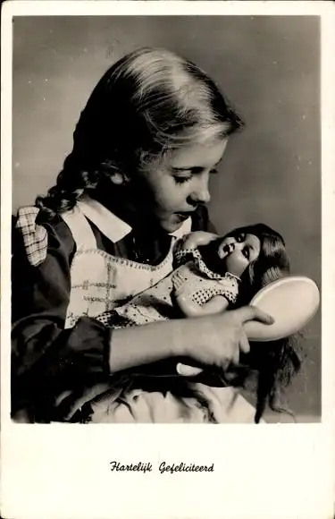 Ak Glückwunsch, Mädchen mit Puppe, Porträt