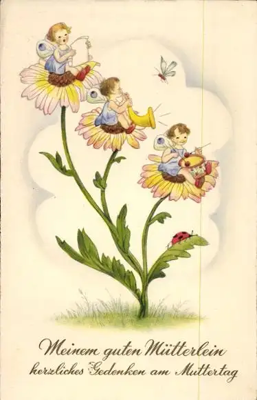 Ak Glückwunsch Muttertag, Musizierende Kinder, Blumen, Insekt