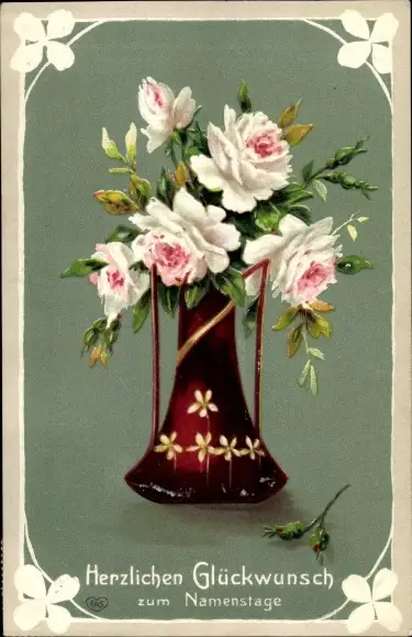 Ak Glückwunsch Namenstag, Rosen in einer Blumenvase