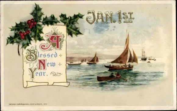 Ak Glückwunsch Neujahr, 1. Januar, Stechpalmenzweig