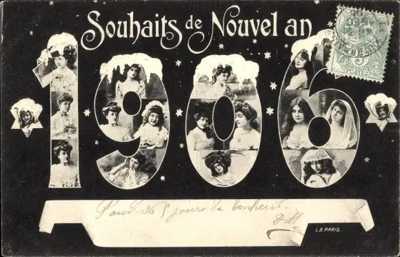 Ak Glückwunsch Neujahr 1906, Frauen-Portraits