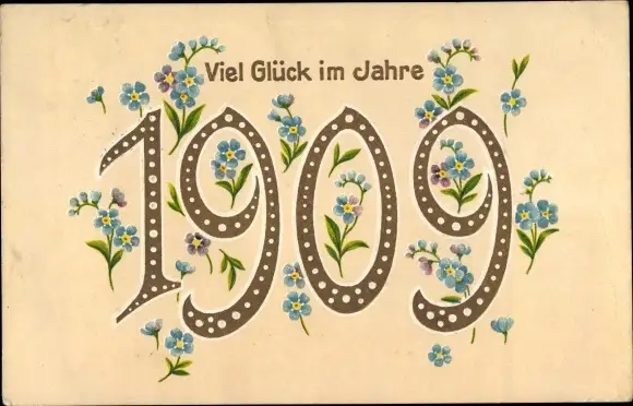 Ak Glückwunsch Neujahr 1909, Vergissmeinnicht