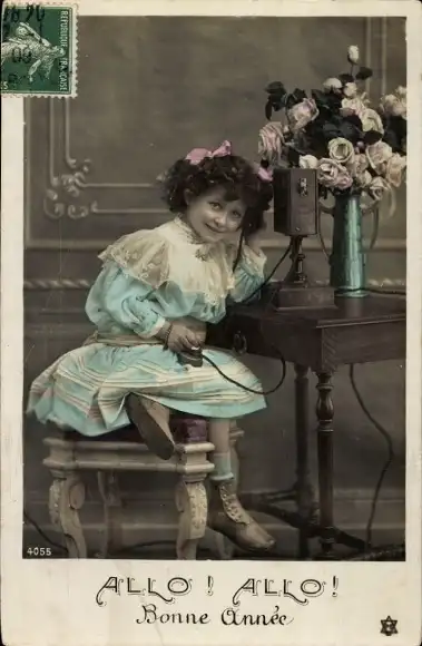 Ak Glückwunsch Neujahr, Allo, Allo, Bonne Année, Mädchen am Telefon