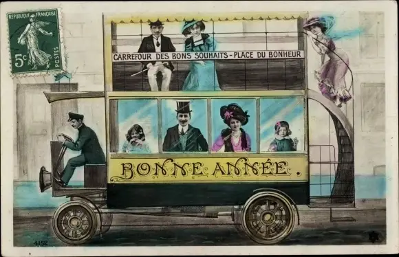 Ak Glückwunsch Neujahr, Autobus, Carrefour des Bons Souhaits