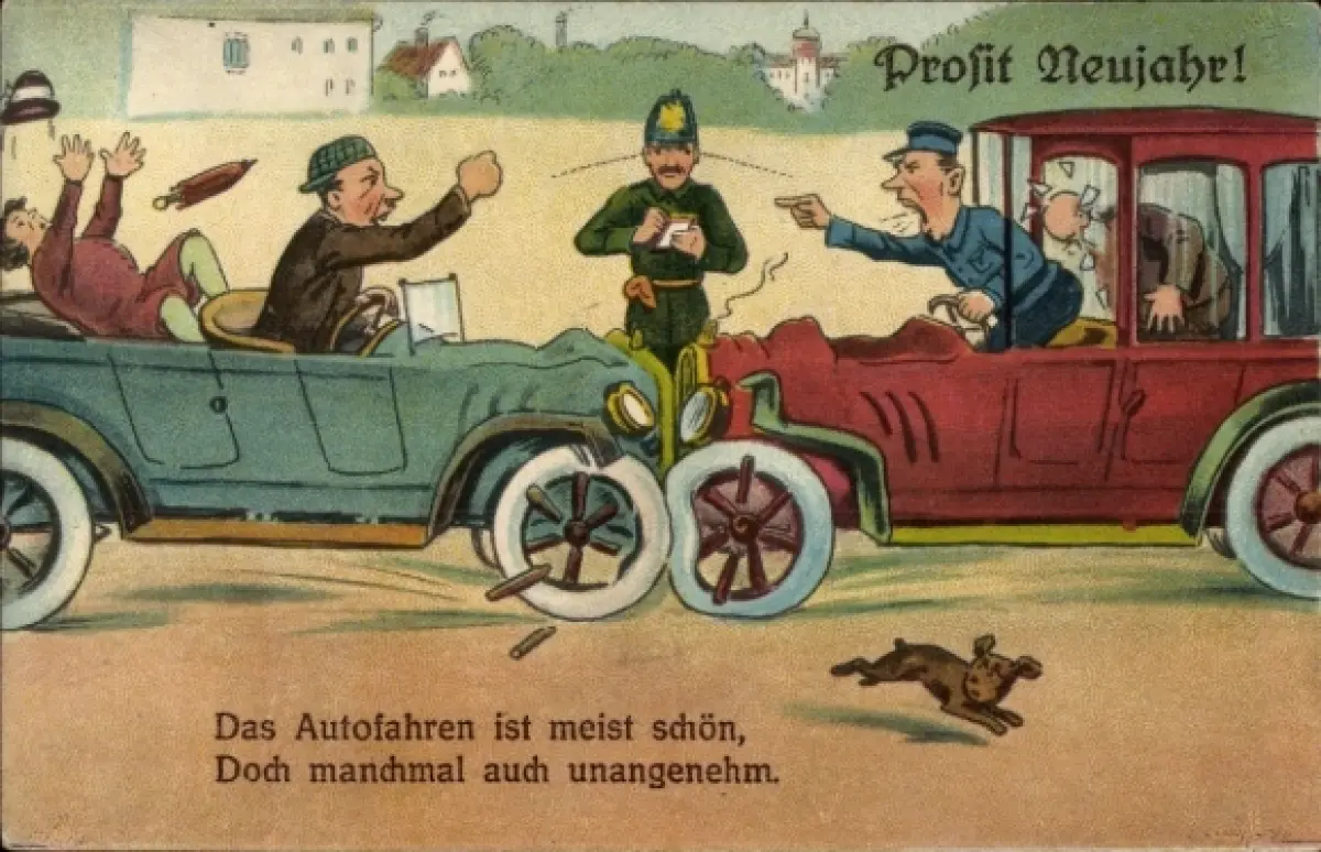 Ak Glückwunsch Neujahr, Autounfall, Polizist