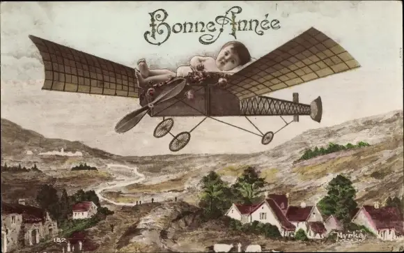 Ak Glückwunsch Neujahr, Baby im Flugzeug