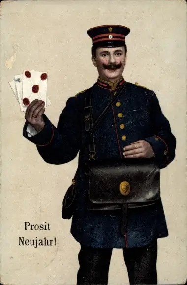Ak Glückwunsch Neujahr, Briefträger, Briefe, Brieftasche
