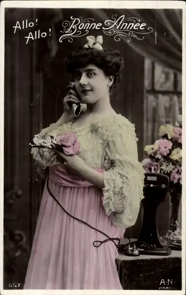 Ak Glückwunsch Neujahr, Dame am Telefon