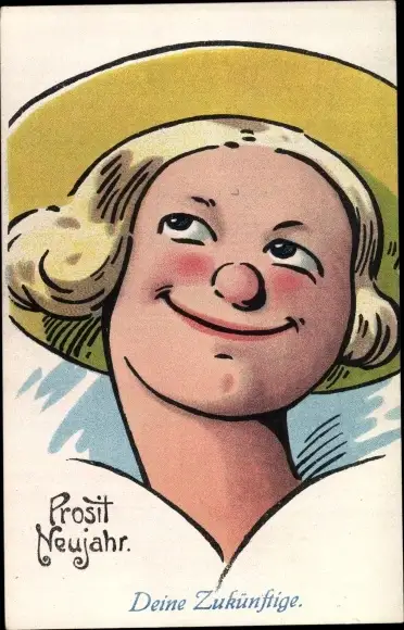 Ak Glückwunsch Neujahr, Deine Zukünftige, Frau mit Hut