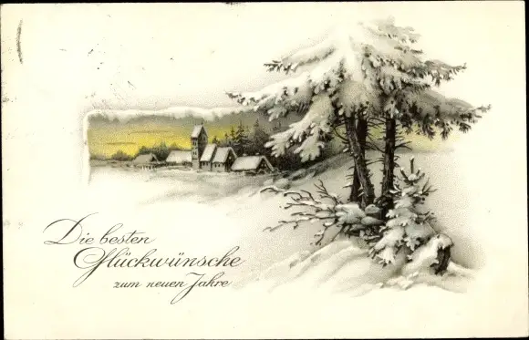 Ak Glückwunsch Neujahr, Dorfansicht im Winter, Kirche