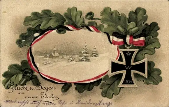 Ak Glückwunsch Neujahr, Eichenblatt, Eisernes Kreuz