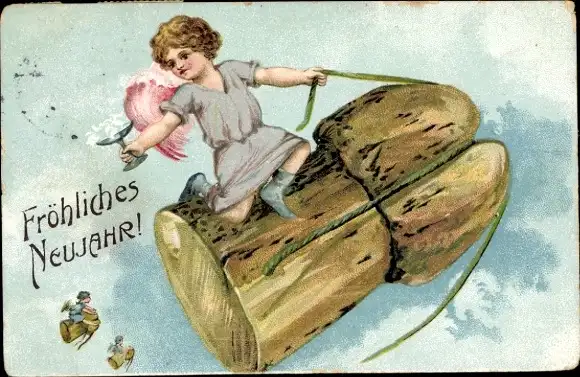 Ak Glückwunsch Neujahr, Engel, Flaschenkorken