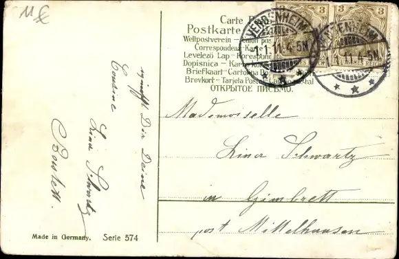 Zustand, siehe Scan, gelaufen, 1911 - ca 14 cm X 9 cm