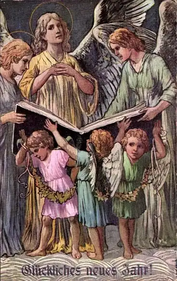 Ak Glückwunsch Neujahr, Engel mit Buch