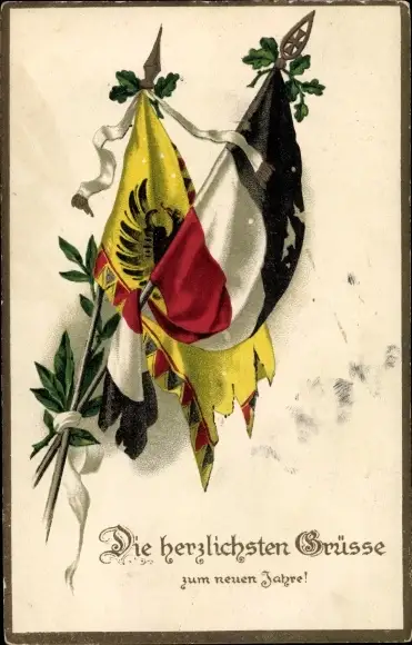 Ak Glückwunsch Neujahr, Fahnen, Lorbeer, Patriotik