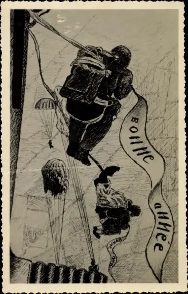 Ak Glückwunsch Neujahr, Fallschirmspringer