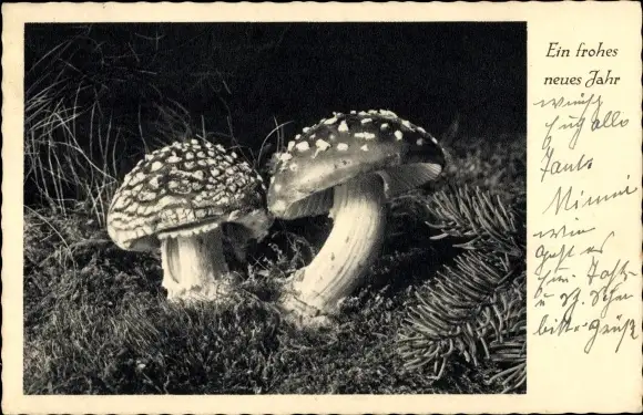 Ak Glückwunsch Neujahr, Fliegenpilze