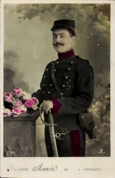 Ak Glückwunsch Neujahr, Französischer Soldat in Uniform, Artillerie