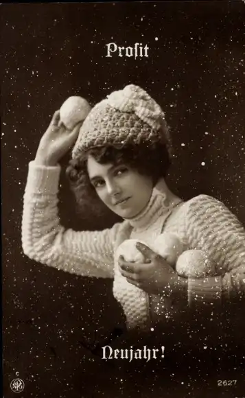 Ak Glückwunsch Neujahr, Frau-Porträt, Schneebälle