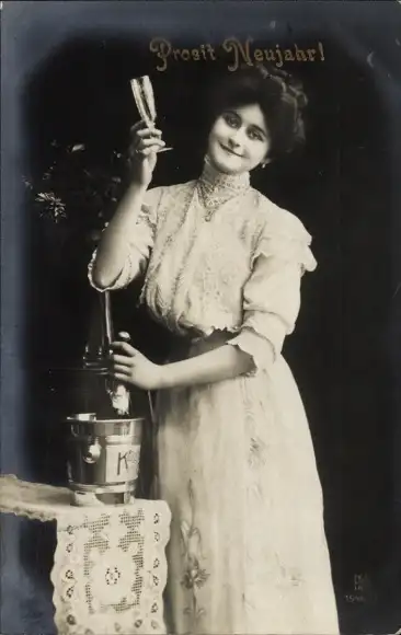 Ak Glückwunsch Neujahr, Frau, Sektglas