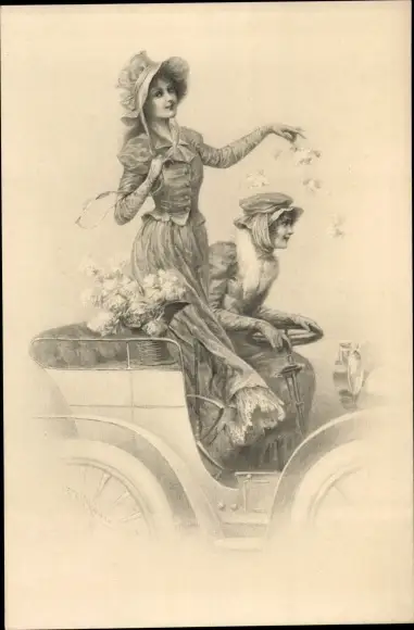 Ak Glückwunsch Neujahr, Frau am Lenkrad, Blumenstrauß