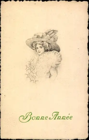 Ak Glückwunsch Neujahr, Frau mit Hut und Mistelzweigen