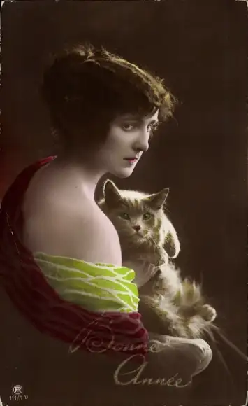 Ak Glückwunsch Neujahr, Frau mit Katze, Porträt
