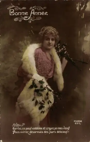 Ak Glückwunsch Neujahr, Frau mit einer Pelzstola