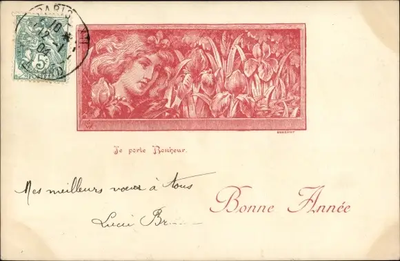 Ak Glückwunsch Neujahr, Frauenportrait, Iris