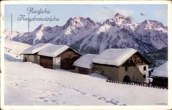 Ak Glückwunsch Neujahr, Gebirge, Wohnhäuser, Schnee