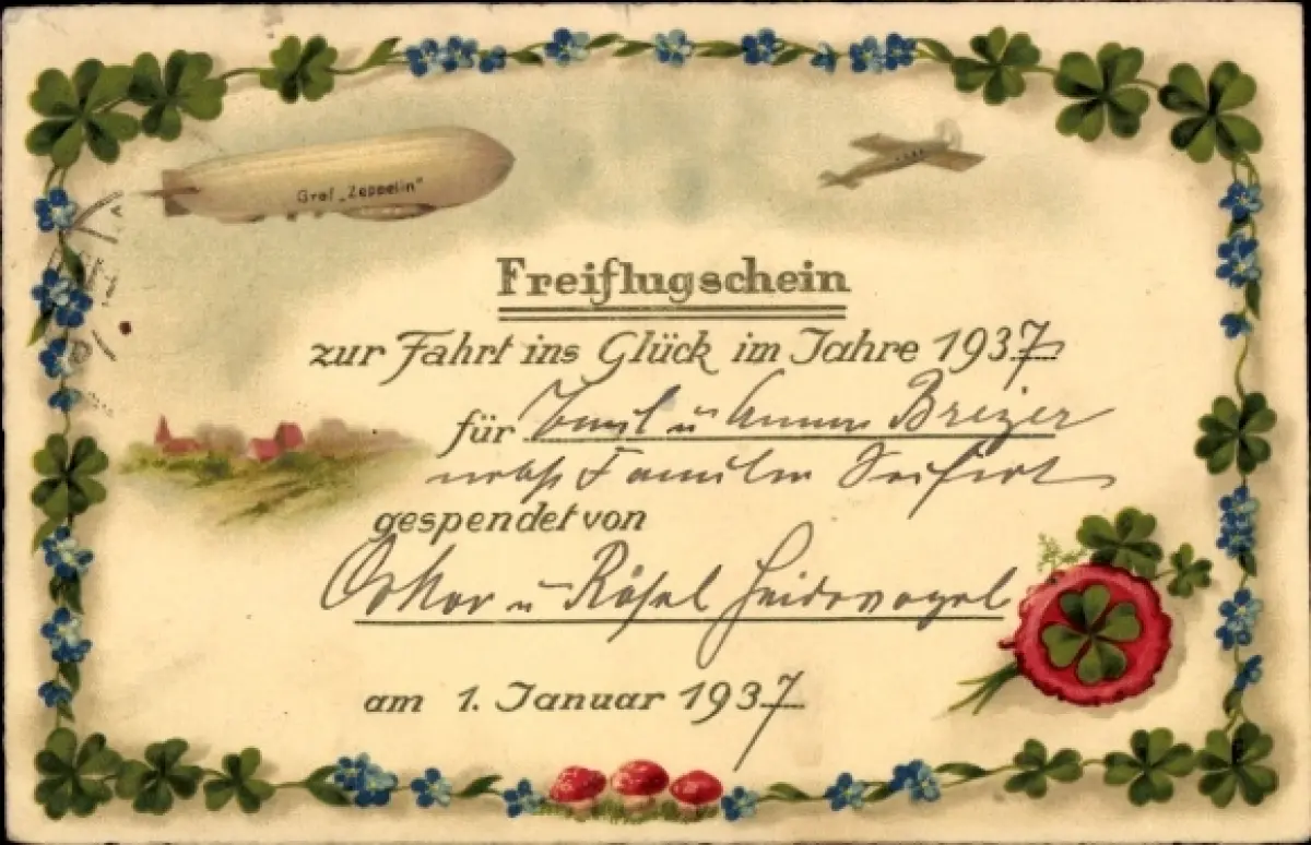 Ansichtskarte, Postkarte, Glückwunsch, Gratulation, Anerkennung, Luftschiff, Zeppelin