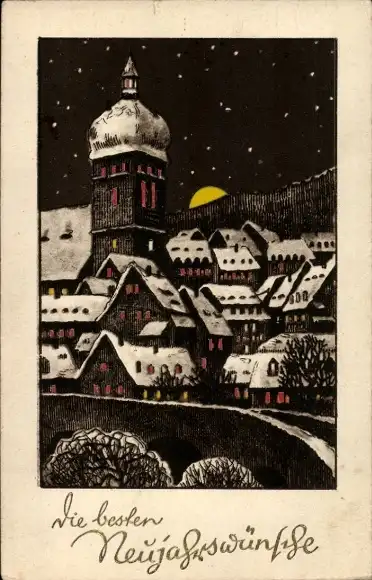 Ak Glückwunsch Neujahr, Häuser, Turm, Brücke