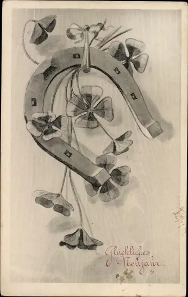 Ak Glückwunsch Neujahr, Hufeisen, Glücksklee
