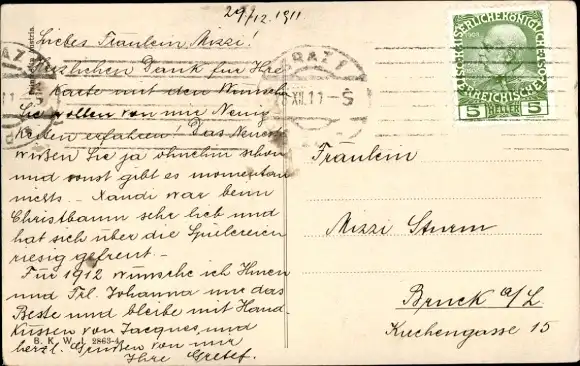 Zustand, siehe Scan, gelaufen, 1911- BKWI 2863-4 - ca 9 cm X 14 cm