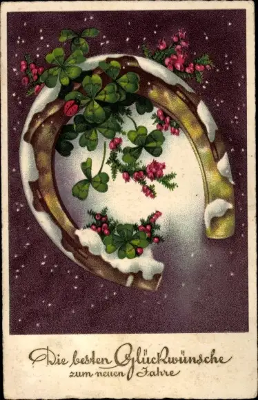 Ak Glückwunsch Neujahr, Hufeisen, Klee, Heide