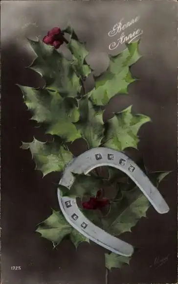 Ak Glückwunsch Neujahr, Hufeisen, Stechpalmenzweig