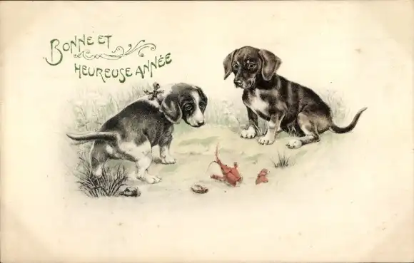 Ak Glückwunsch Neujahr, Hunde, Hummer