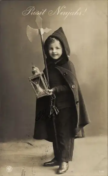Ak Glückwunsch Neujahr, Junge als Nachtwächter