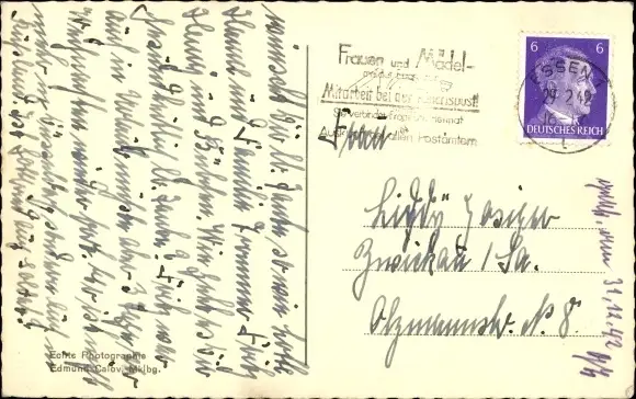 Zustand, siehe Scan, gelaufen, 1942 - ca 9 cm X 14 cm