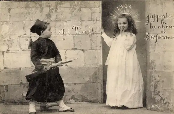Ak Glückwunsch Neujahr, Junge in französischer Uniform, Zuave, Jahreszahl 1904
