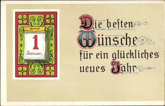 Ak Glückwunsch Neujahr, Kalender, Glücksklee