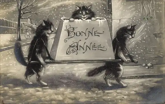 Ak Glückwunsch Neujahr, Katzen, Trage