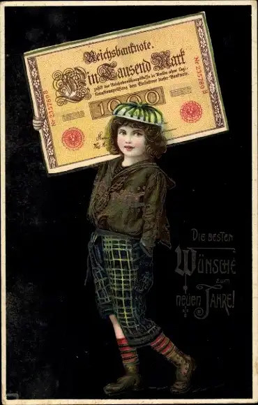 Ak Glückwunsch Neujahr, Kind, Geldschein, Tausend Mark
