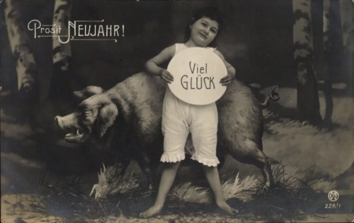 Ak Glückwunsch Neujahr, Kind, Schwein